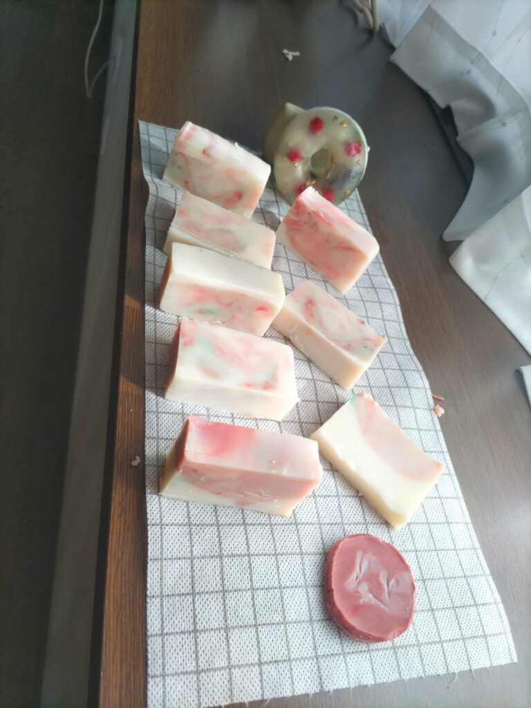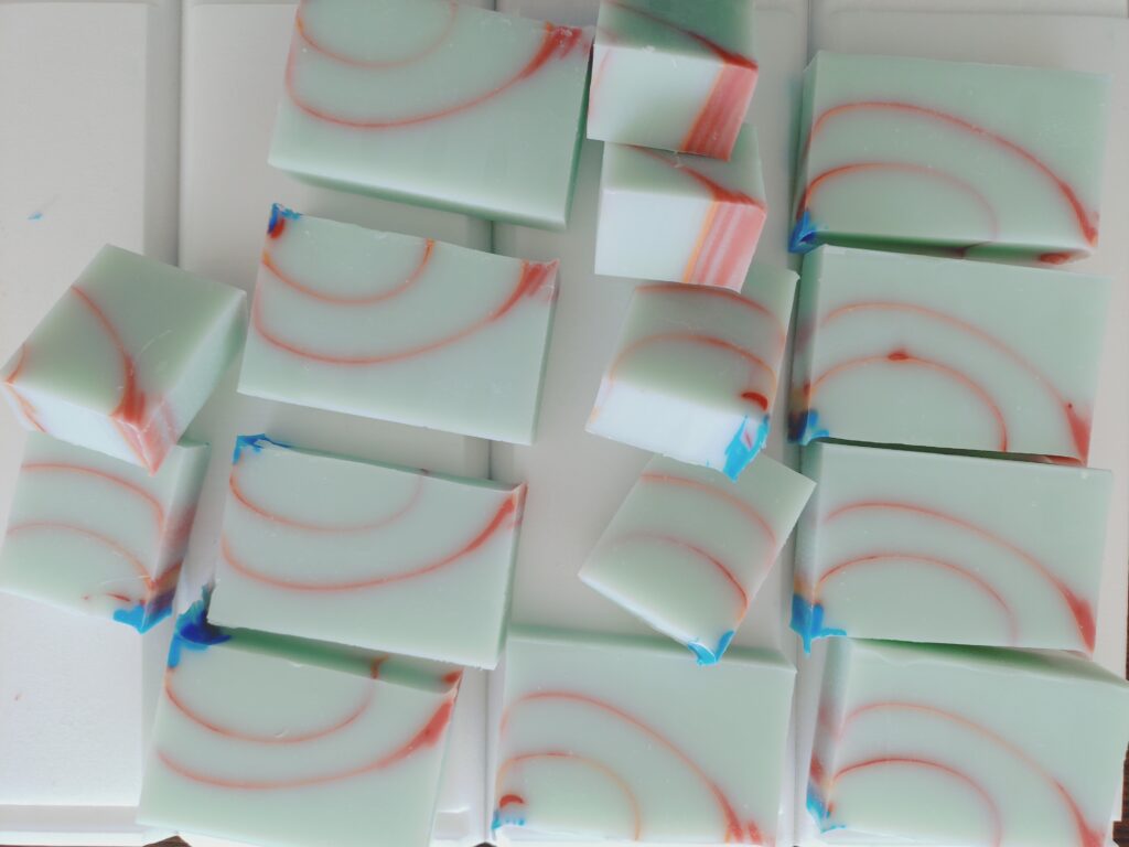 皆さまの石けん作品集 2025.11.06 型出し後のお写真を送ってくださった皆さまの素敵な石けんたちをご覧ください。 ほとんどの方がはじめての方ですが、どの石けんもみんな素敵です。 ピンクと紫が華やかなマントラスワール 爽やかな色の組み合わせのマントラスワール クリスマスカラーのアイスクリームの様なかわいらしいマーブル 人気のレインボー丁寧に色を重ねられてます 推しカラーを石けんにしたこだわり仕様 オーロラみたいなマーブル 天然のビタミンカラーがきれいなアスタキサンチン。マントラスワールとマーブル 偶然できたかわいい水玉模様 きれいなエメラルドグリーンにピンクのラインがきれいに入っています ピンクと紫、ホワイトのマーブル マントラスワールもカット方向を変えると鞠の様なお花の様なかわいい模様になりますね 青と紫の淡い2色マーブル